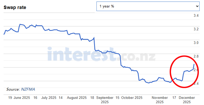 Worse, those rising international benchmark rates are pushing up swap rates. On Monday they jumped sharply again. Fixed mortgage rates are influenced far more by wholesale swap rates than by the OCR.