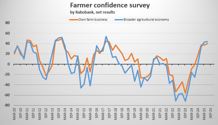 Conducted since 2003, the Rabobank Rural Confidence Survey is administered by independent research agency KANTAR, interviewing a panel of approximately 450 farmers each quarter.