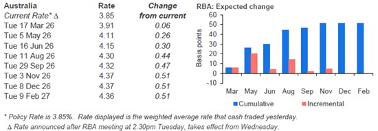 We started the day with financial markets pricing in a much more elevated chance of multiple Official Cash Rate (OCR) hikes in 2026.
