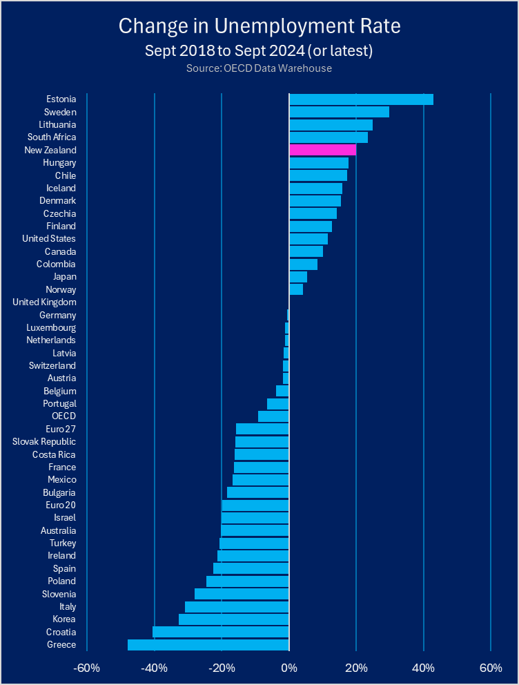 Having just visited Denmark the place is miles ahead of NZ in every metric - Unemployment is 2.6% in September 2024, unchanged from the previous month and marking the highest jobless rate since October 2021.