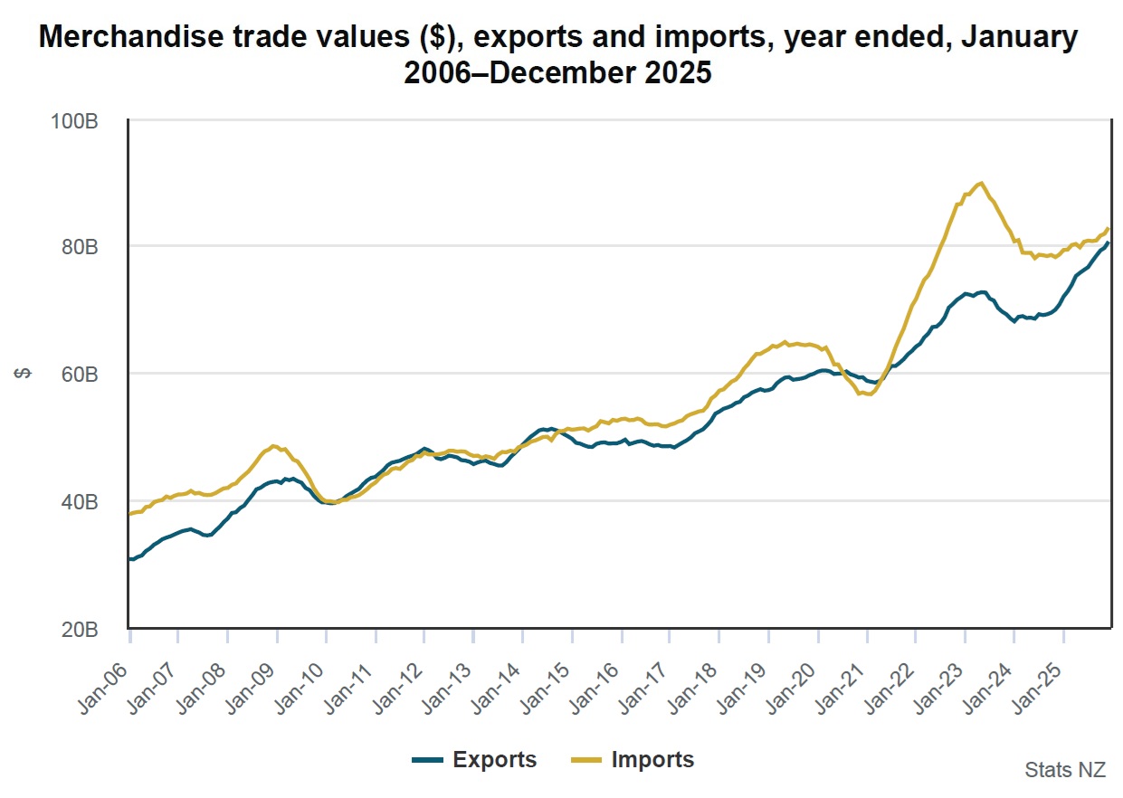 The value of our exports was $80.7 billion, which was up $9.9 billion (14%), compared with the figures for 2024, according to Stats NZ.