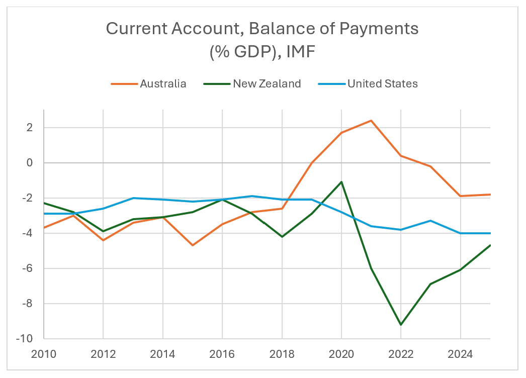 The point might be made that New Zealand is a country with a current account deficit, so is dependent on foreign financial capital, but so is the United Kingdom, which has a similar ratio to the United States.