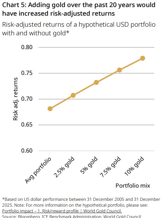 7The 3% figure is an aggregate share of gold bullion held by investors relative to global financial assets; it does not imply a typical portfolio holds 3% in gold.