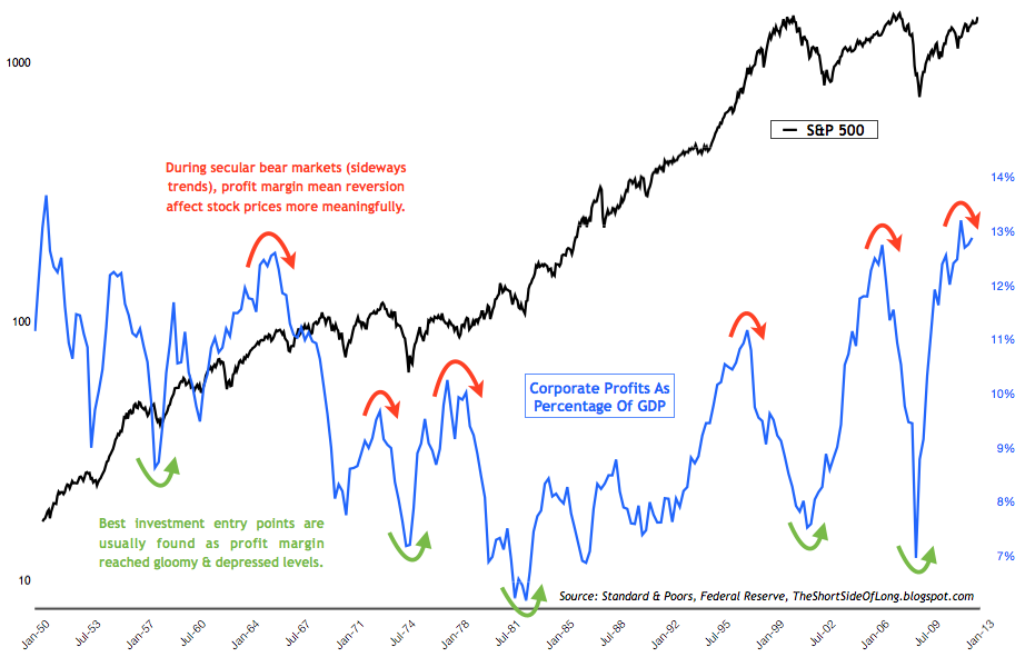 3. Maybe the stock market rally makes sense - This chart below (courtesy of the short side of long) shows how the corporate profit share in America has doubled to 13% of GDP since the early 1980s. It means capitalism doesn't have a socially sustainable future, but hey...