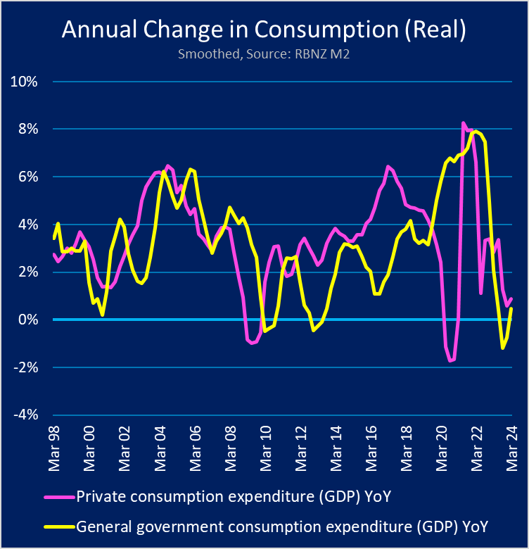 Remember also that, according to Statistics NZ estimates, in the year to March 2024 our population grew by about 130,000, or 2.5% - largely on the back of a massive surge in immigration. This immigration surge soaked up the previous slack in the labour market. Additionally the extra bodies in the economy - what they were producing and what they were consuming - helped to mask the fact that the underlying economy was declining.
