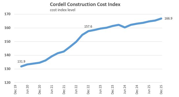 In other words, construction costs continue to increase, but the pace of growth remains contained – and certainly nothing like the inflation seen in the post - COVID phase, when the CCCI rose by more than 10% at its peak annual growth rate in late 2022. That was when plasterboard for example was in short supply and wages were rising quickly.