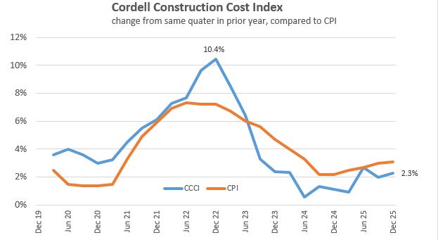 The CCCI is comprised of around 50% materials, 40% wages, and 10% for other charges such as professional fees.