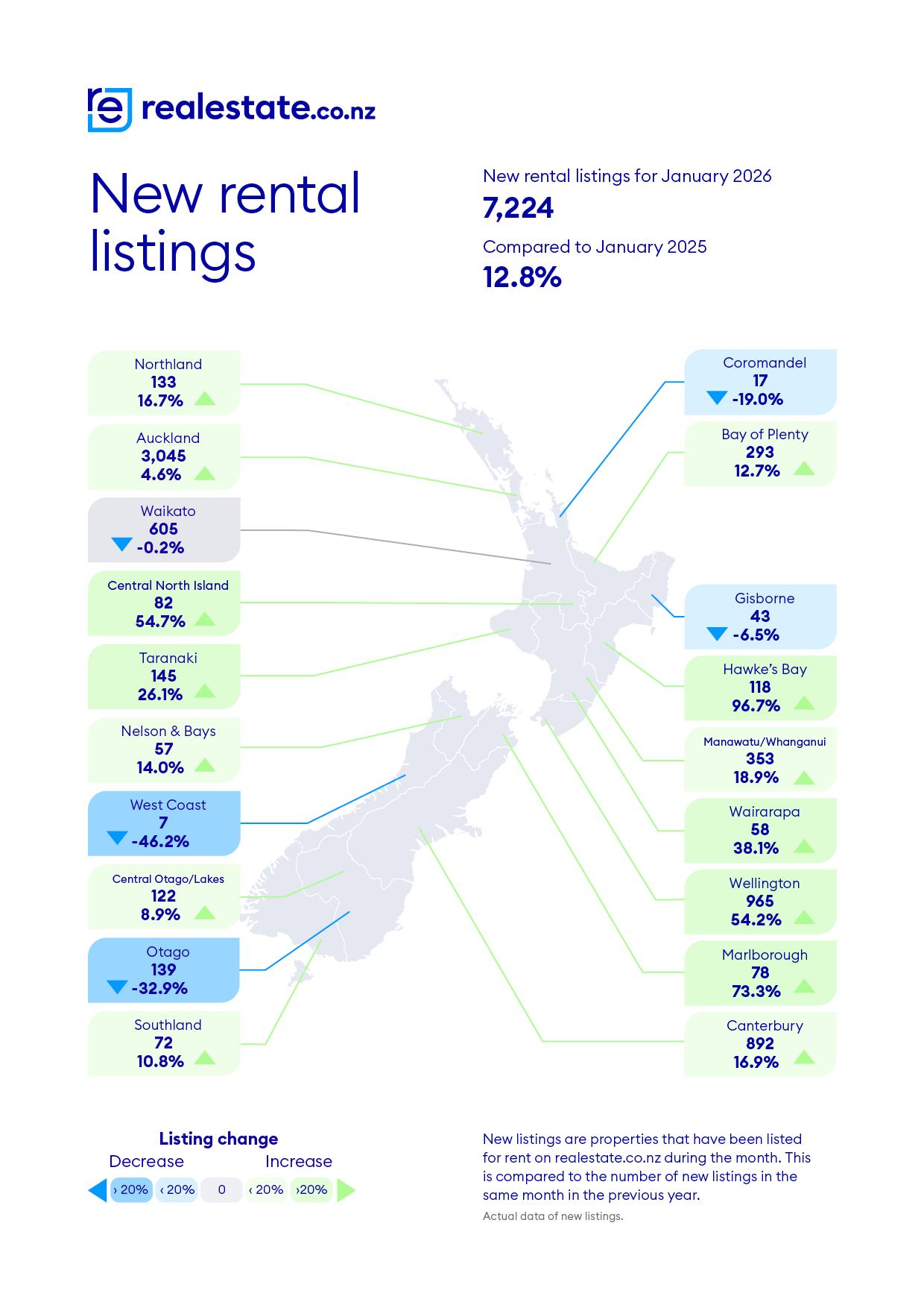 Realestate.co.nz saw new rental listings rise 12.8%, year-on-year, in January to 7224.