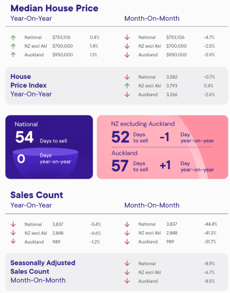 The Auckland median price was $950,000, down 5.9% compared to December.
