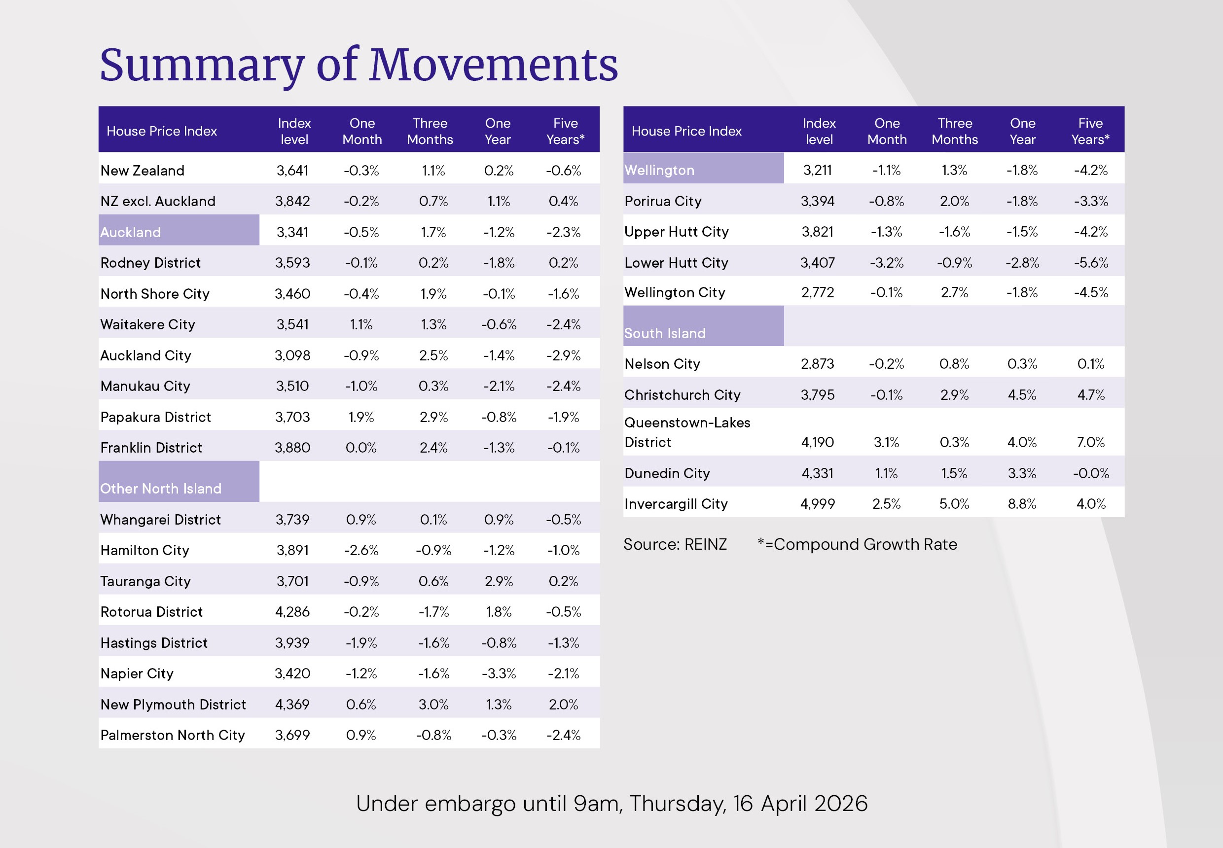 REINZ House Price Index - March 2026