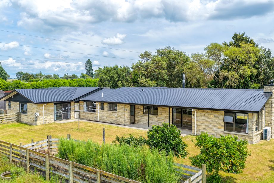 Set on a generous 4.1ha lifestyle block, this solid Hinuera Stone home offers space, comfort, and flexibility in a generous rural setting. Featuring five bedrooms, two bathrooms and an additional s...