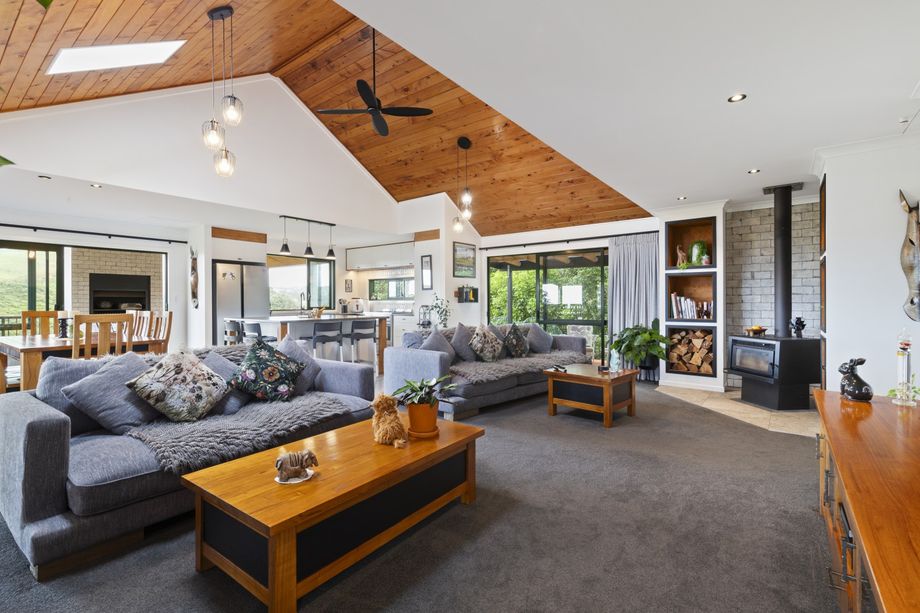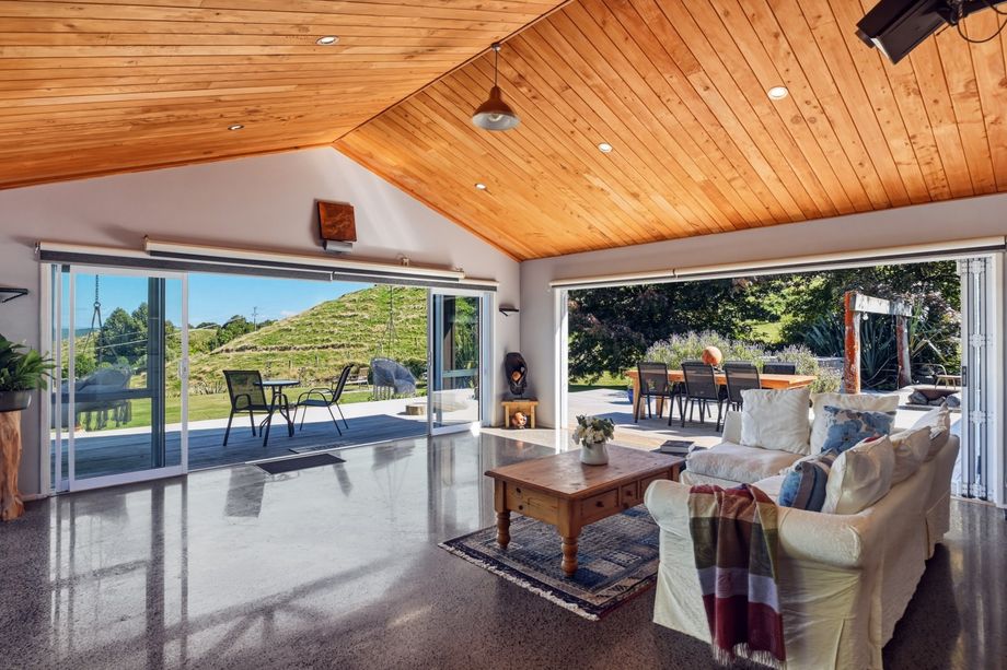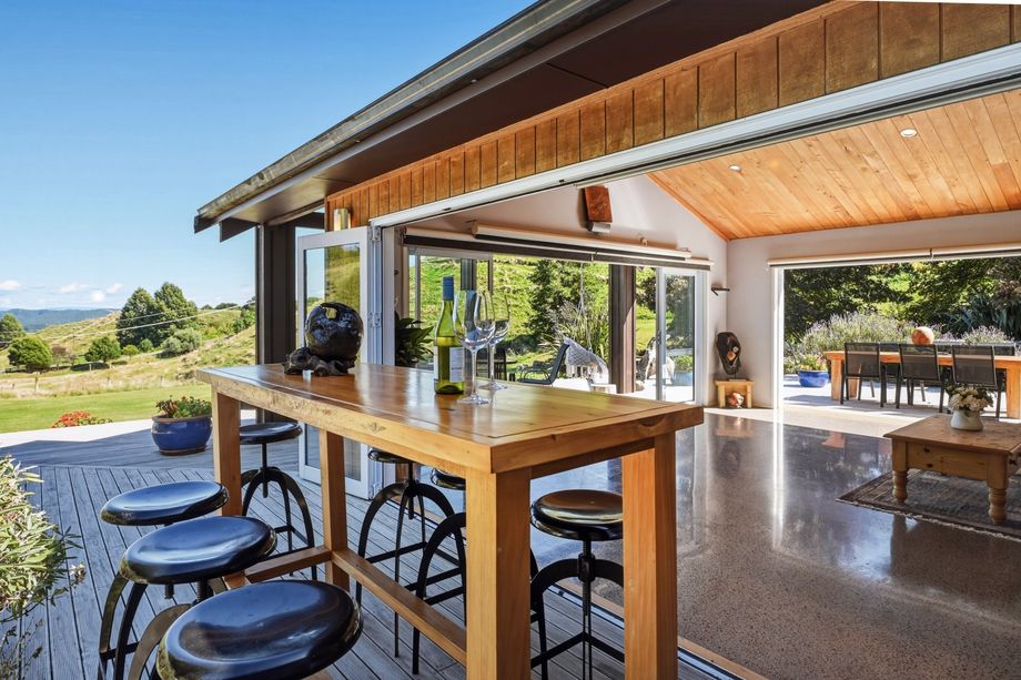 Set high in the Wainui hills and accessed through farmland and native bush, this architecturally designed retreat offers privacy, peace, and a lifestyle that feels a world away.Downstai...