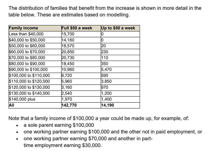 “About 143,000 working families with children will get an extra $50 a week through a boost to the in-work tax credit,” she said.