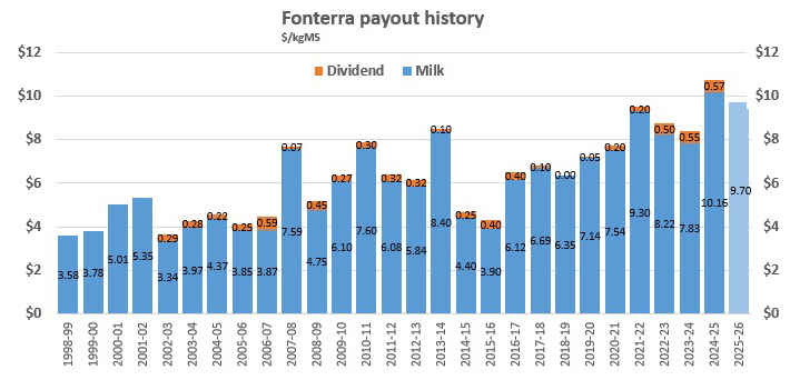 - Forecast Farmgate Milk Price range: NZ $9.40 - $10.00 per kgMS, with a midpoint of $9.70 per kgMS