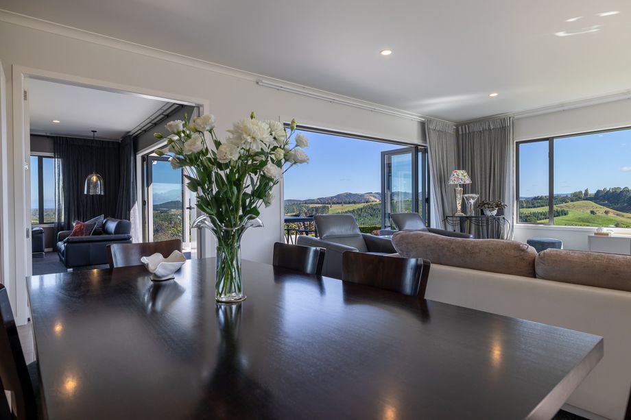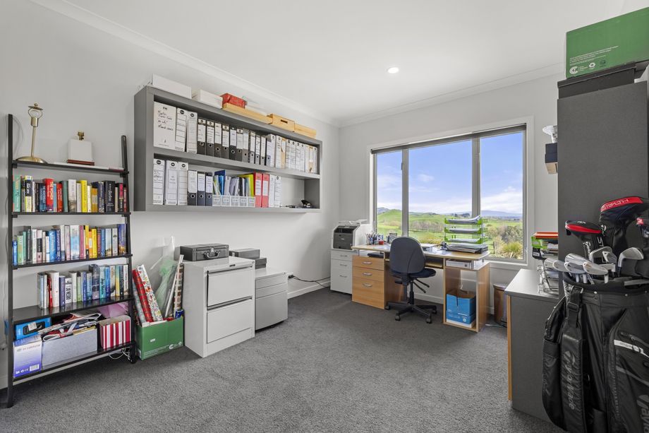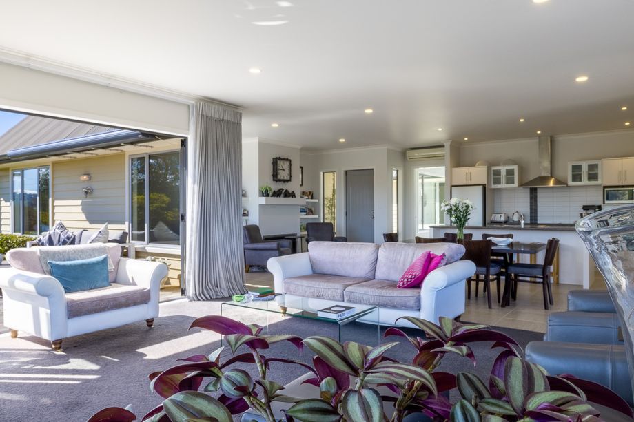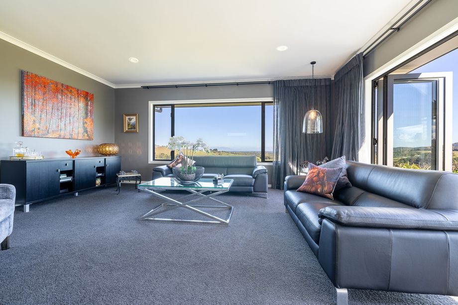 Located midway between Marton and Bulls, the spacious four bedroom + office home sits on an elevated site 800m off the road, offering outstanding views from the multiple, northfacing living areas and deck, over the property.