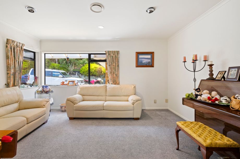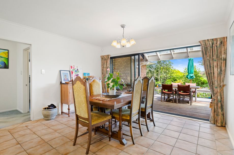 Originally built in the 1960s the home was extended in 2004 and offers five bedrooms, an office, three bathrooms and a double garage. The kitchen connects to a spacious open plan living area, with the added benefit of a second separate lounge. A swimming pool added in 2004 complements the elevated setting, established trees and well developed gardens.
